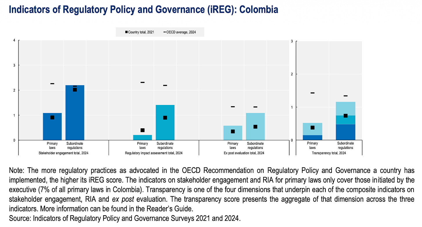 Over time, Colombia has accumulated layers of regulation across sectors, often introduced to address legitimate concerns but rarely revisited or evaluated. OECD regulatory reviews highlight a strong emphasis on ex-ante controls and procedural compliance, with limited use of ex-post evaluation or outcome-based review. The cumulative effect is slower decision-making, legal uncertainty, and high fixed costs for building and scaling projects. This regulatory drag contributes to underbuilding in infrastructure and housing, discourages formalization, and delays energy and environmental projects.